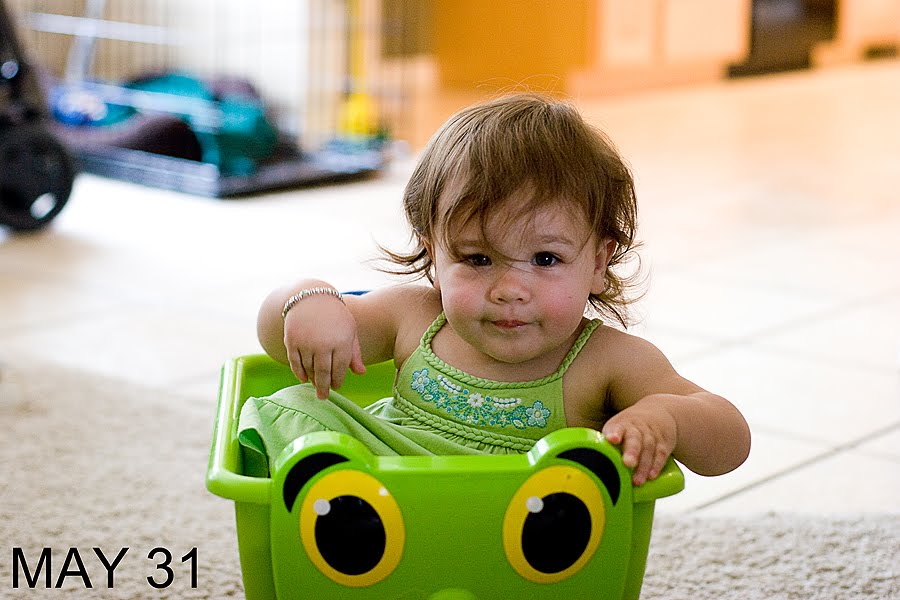 Is that green bin she's sitting in a frog? Where did you get it? My 6 yo collects frogs and that would be so cute in his room.